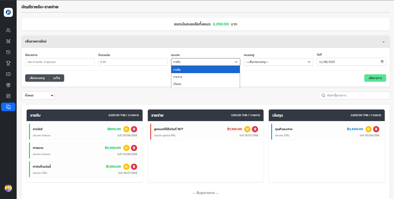 เข้าถึงข้อมูลสถิติสำคัญของก๊วนคุณได้ครบถ้วนในที่เดียวบน Dashboard ที่ใช้งานง่าย มองเห็นภาพรวมรายรับ รายจ่าย และสถิติผู้เล่นได้ชัดเจน