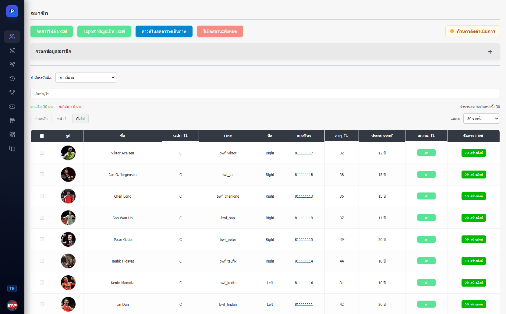 ระบบครบวงจรสำหรับจัดการข้อมูลสมาชิกก๊วนของคุณ ตั้งแต่การเพิ่มผู้เล่นใหม่, ข้อมูลส่วนตัวแบบละเอียด, ไปจนถึงการจัดเก็บรูปโปรไฟล์ส่วนตัว ทำให้การบริหารคนเป็นเรื่องง่ายและเป็นระเบียบ