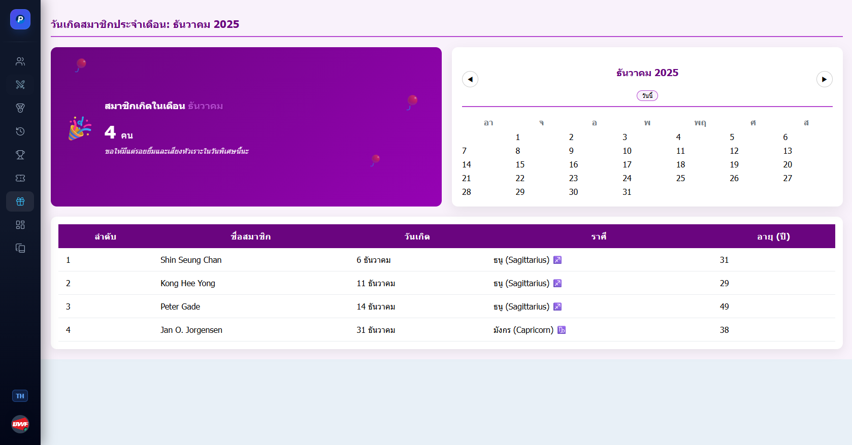 สร้างบรรยากาศที่ดีด้วยระบบแจ้งเตือนเมื่อถึงวันคล้ายวันเกิดของสมาชิก ทำให้คุณไม่พลาดที่จะส่งคำอวยพรหรือจัดกิจกรรมพิเศษให้คนสำคัญ