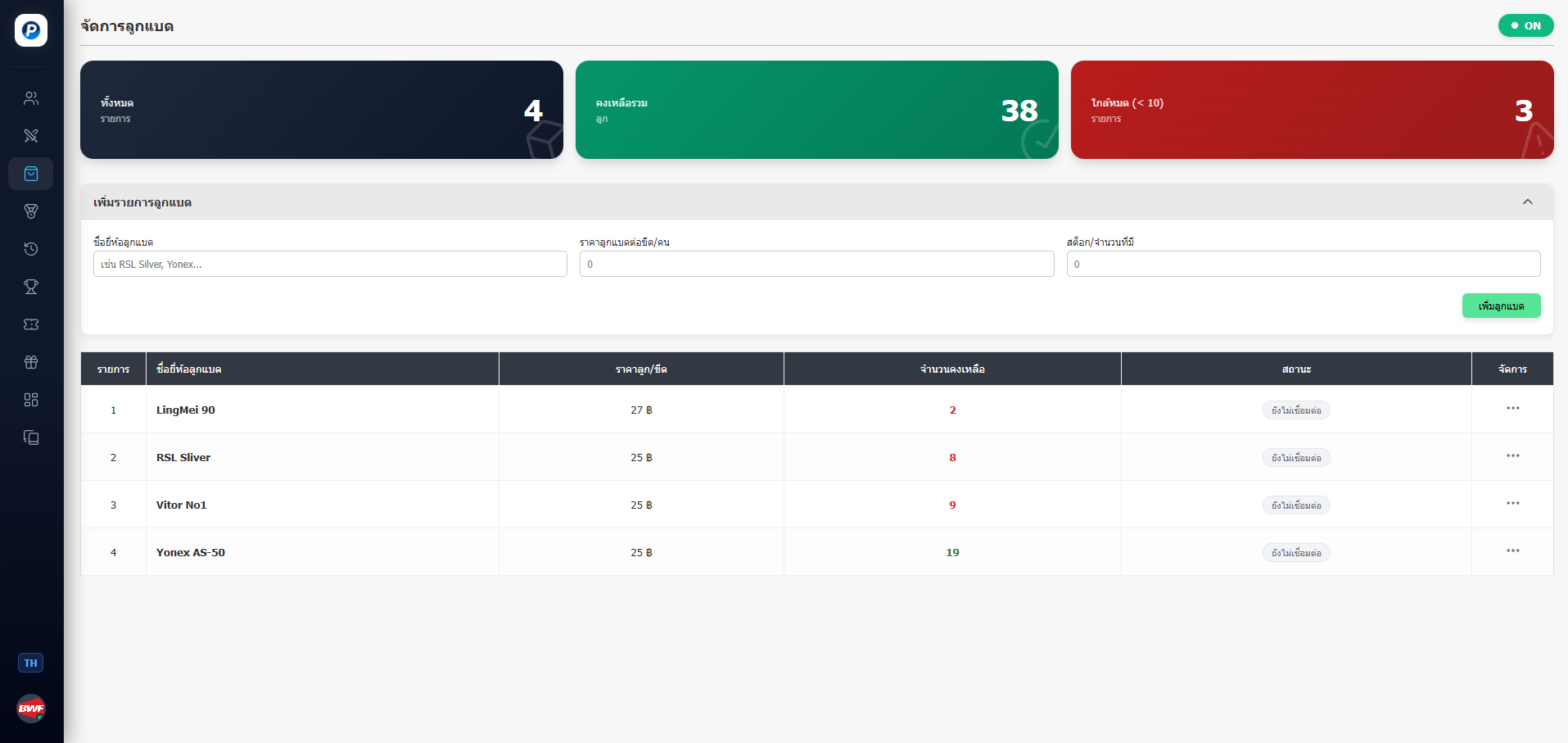 จัดการคลังลูกแบดของก๊วนคุณได้อย่างมีประสิทธิภาพ บันทึกจำนวนลูกแบดที่ใช้ในแต่ละแมตซ์ พร้อมติดตามสต็อกคงเหลือแบบเรียลไทม์ ช่วยให้คุณไม่พลาดการสั่งซื้อเมื่อลูกแบดใกล้หมด
