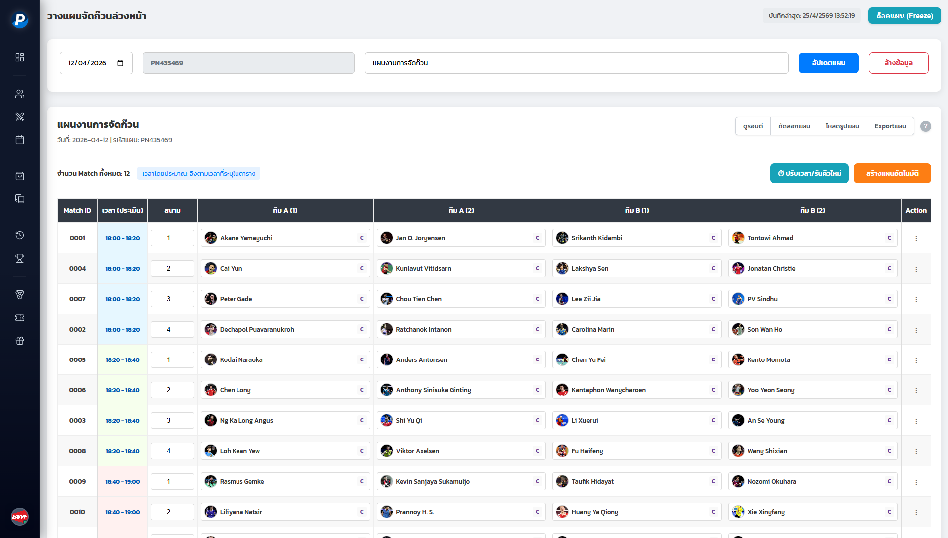 หมดปัญหาความวุ่นวายหน้าสนามด้วยระบบจัดคิวล่วงหน้าอัจฉริยะ เพียงกำหนดจำนวนสมาชิก ระบุจำนวนสนาม และเวลาที่เปิดใช้งาน ระบบจะคำนวณและจัดสรรผู้เล่นลงสนามให้อัตโนมัติอย่างแม่นยำ ช่วยให้ก๊วนของคุณรันเกมได้อย่างลื่นไหลไม่มีสะดุด