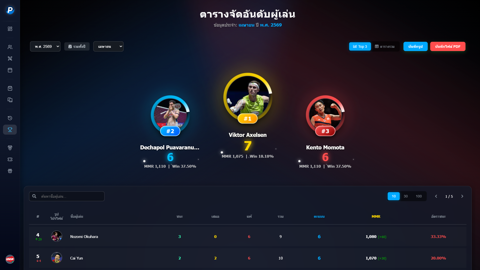 ยกระดับการจัดก๊วนให้สนุกยิ่งขึ้นด้วยระบบ Ranking ผู้เล่นจะได้รับคะแนนสะสมจากการแข่งขันจริง สร้างแรงจูงใจในการพัฒนาฝีมือและเพิ่มความท้าทาย